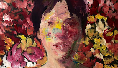 Le jaune claque et vibre. Il éclabousse les deux tiers du tableau. Un aplat rouge teinté d'orange établit une subtile transition avec une masse horizontale plus sombre qui fait office de socle. À la droite du tableau, quelques coups de brosse en nuances de gris viennent se perdre aux confins du rideau jaune. Je ne sais pas s'il s'agit vraiment d'un rideau, mais la transparence de cet espace est une indication. Le jaune s'imprègne de blanc et vient mourir au contact de l'aplat rouge-orangé passé à la spatule. C'est aussi ce qui confère à l'ensemble sa théâtralité. La force de ce tableau réside dans la simplicité de sa mise-en-scène. C'est la marque de fabrique du travail de Ken Kurojiro. Je ne me lasse pas de la puissance évocatrices de ces différentes nuances de jaune.